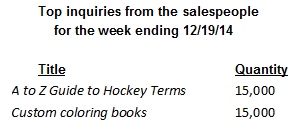 Volume 13, Issue 265, Number 318 December 22, 2014 | | | | We can sell your books in special markets -- on commission only