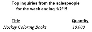 Volume 14, Issue 1, Number 319 January 5, 2015 | | | | We can sell your books in special markets -- on commission only