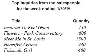 Volume 14, Issue 3, Number 323 February 2, 2015 | | | | We can sell your books in special markets -- on commission only