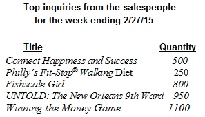Volume 14, Issue 5, Number 323 March 2, 2015 | | | | We can sell your books in special markets -- on commission only